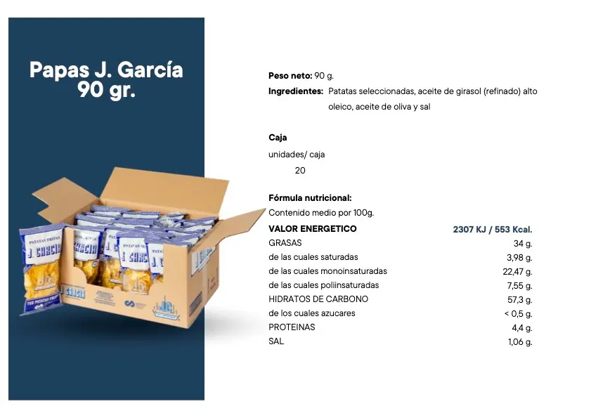 Caja de bolsas de Papas J. Garcia de 90 gr.