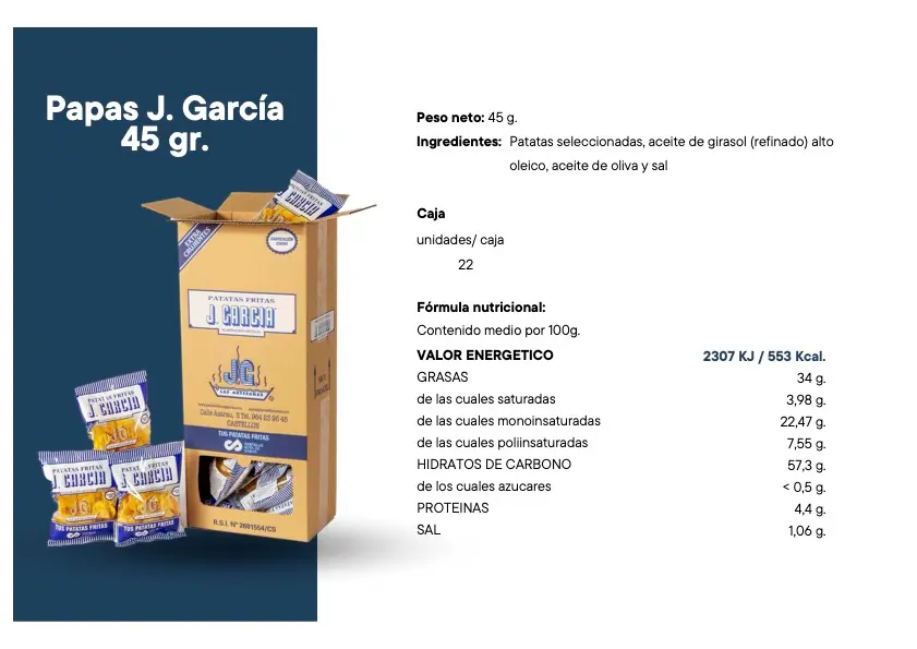 Caja de bolsas de Papas J. Garcia de 45 gr.